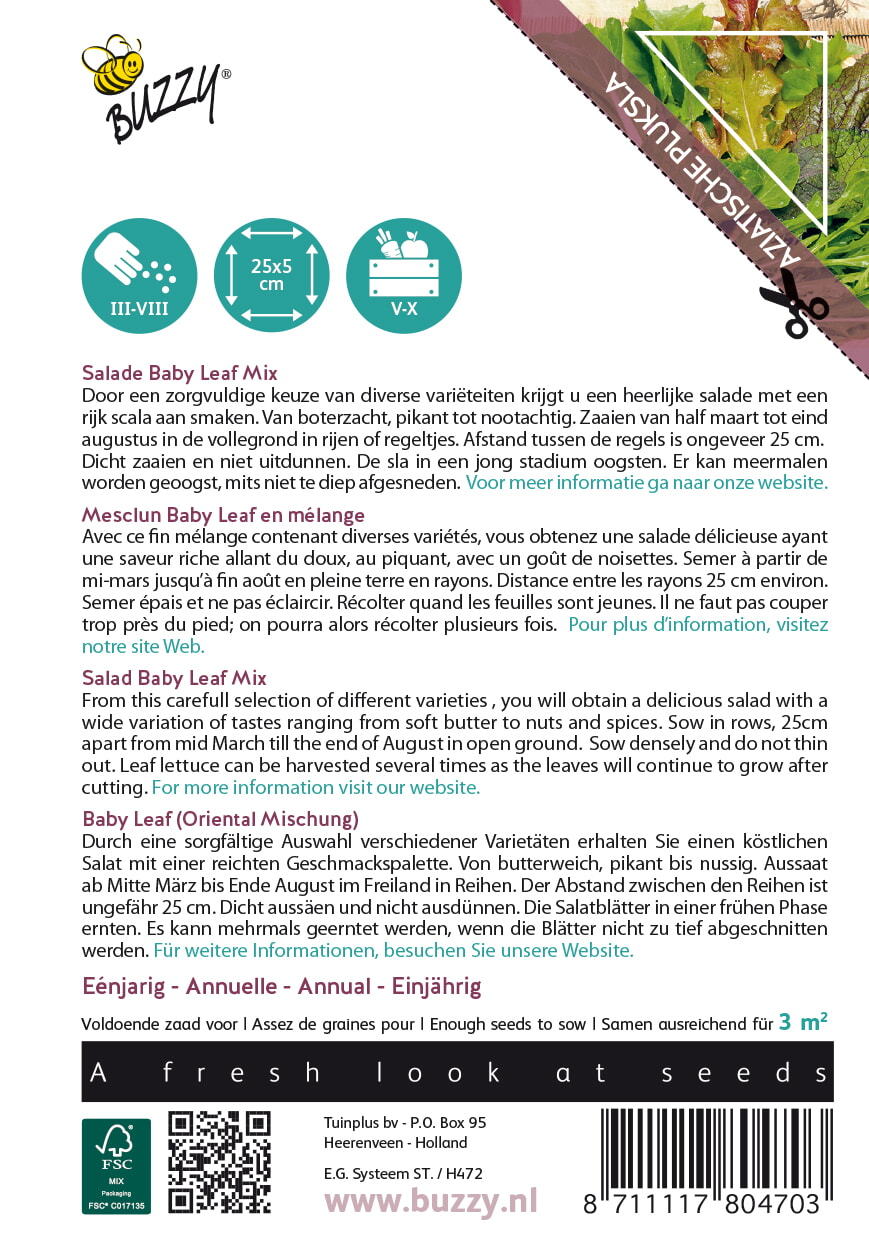 Bij AVRI Bloem- en Tuincentrum kunt u het artikel "Buzzy® Xotica Oriental mix, Baby Leaf mix" online bestellen. Naast het artikel "Buzzy® Xotica Oriental mix, Baby Leaf mix" bieden wij nog meer soortgelijke artikelen. Wilt u meer weten over het artikel "Buzzy® Xotica Oriental mix, Baby Leaf mix" dan bent u van harte welkom in ons tuincentrum in Oosteind of neem contact met ons op via info@avri-tuincentrum.nl.