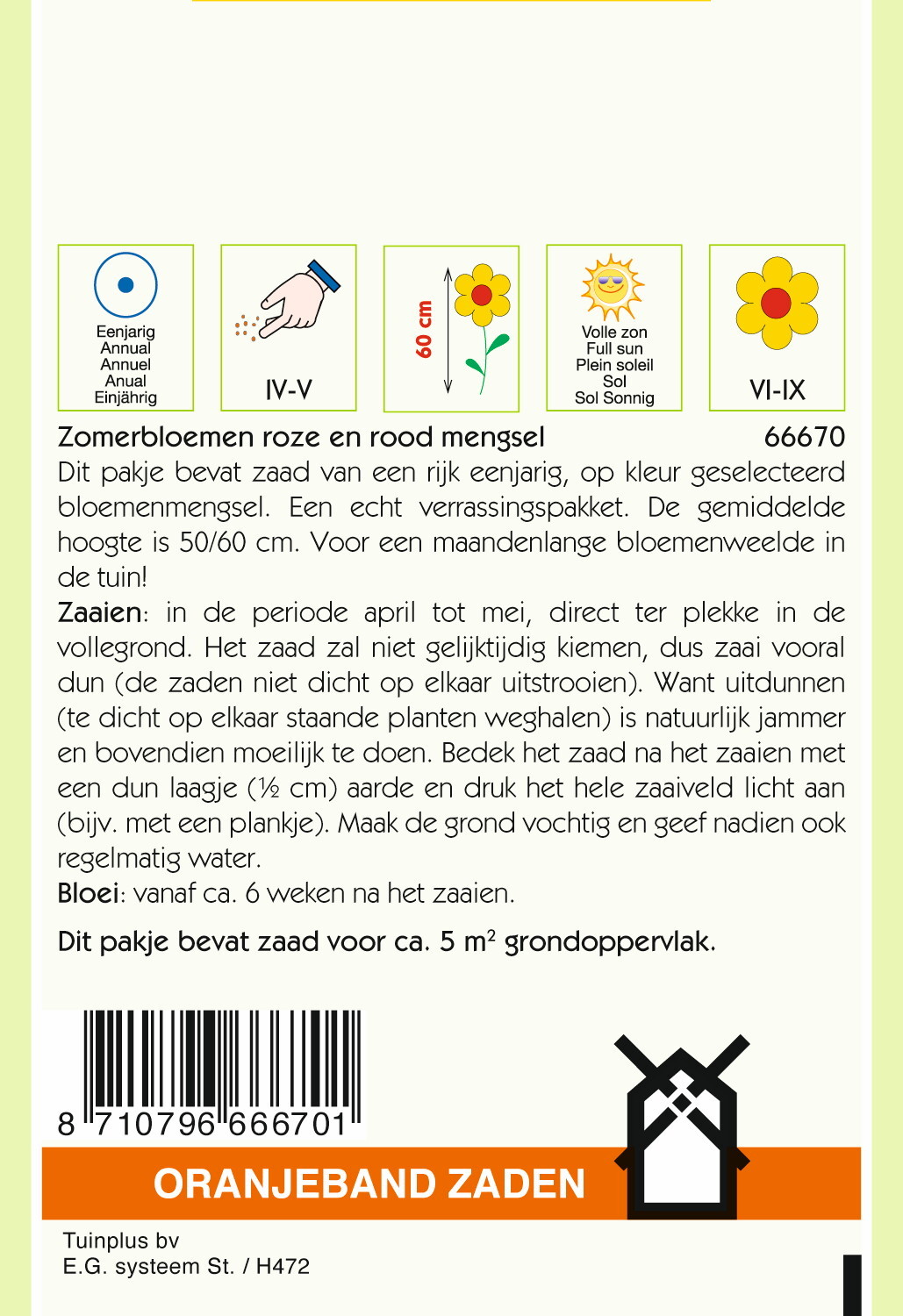 Dit pakje bevat zaad voor ca. 5 m2 grondoppervlak.