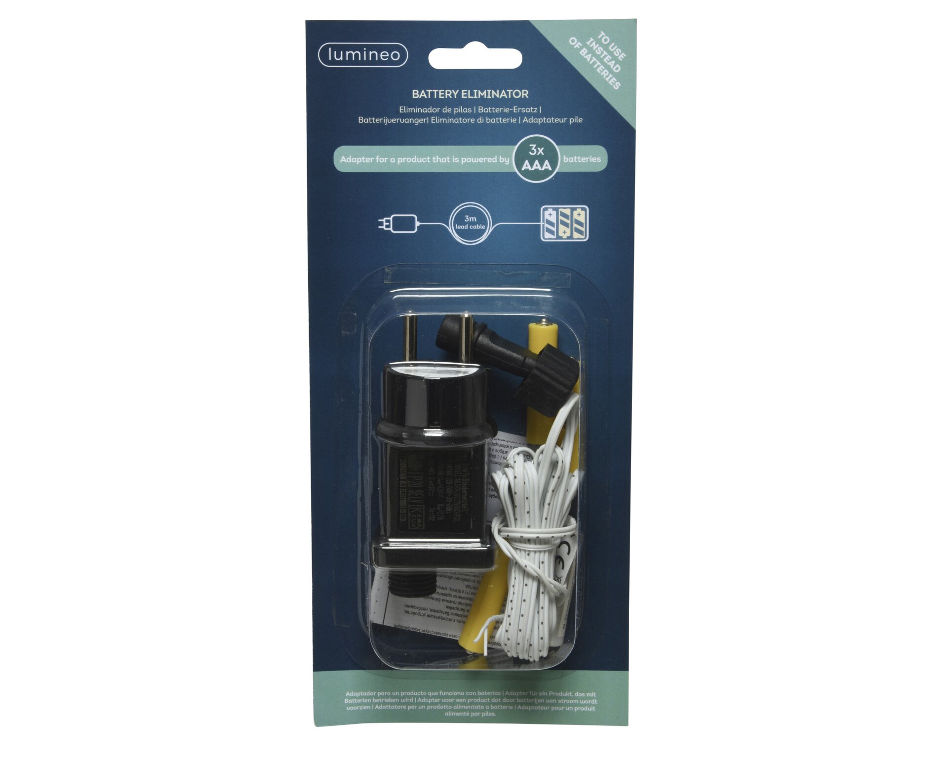 Met deze Lumineo batterijvervanger blijft je sfeervolle binnenverlichting moeiteloos branden. Perfect voor verlichte huisjes, kerstdecoraties of andere Home-accessoires die normaal drie AAA-batterij nodig hebben. De transformator steek je direct in het stopcontact en levert een constante stroom, zodat je geen batterijen meer hoeft te kopen of te vervangen. Dankzij de extra lange kabel heb je veel vrijheid om je lichtdecoraties precies neer te zetten waar jij ze wilt, zonder beperkt te zijn door de afstand tot een stopcontact. Zo gaat alle aandacht naar de warme, gezellige verlichting in huis.
