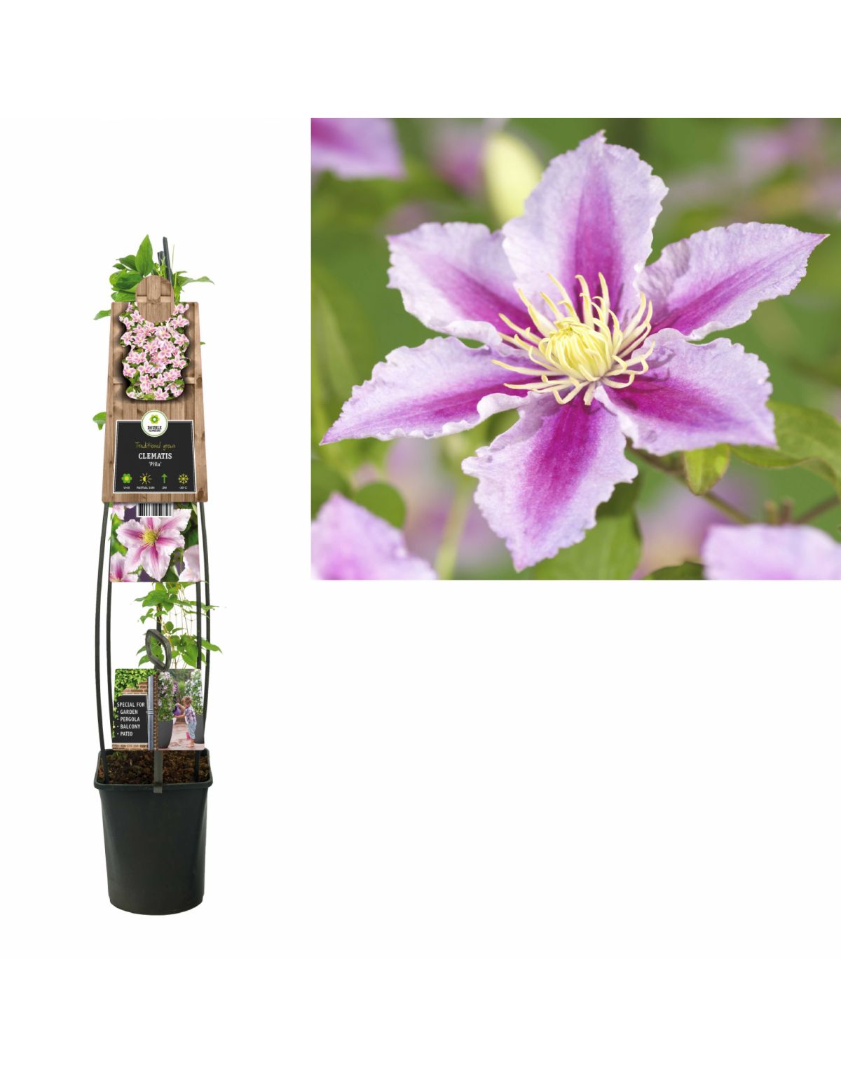 Deze klimplant Clematis Piilu Is incl. pot 120 cm hoog en volgroeid in ongeveer 3 jaar. Hij kan een hoogte bereiken van ongeveer 2 meter. Deze Clematis Piilu bloeit van Juni-September met bloemen in de kleur roze met rode streep en is winterhard. Deze klimplant kan gesnoeid worden. Uitgebreide informatie staat op het plantetiket.