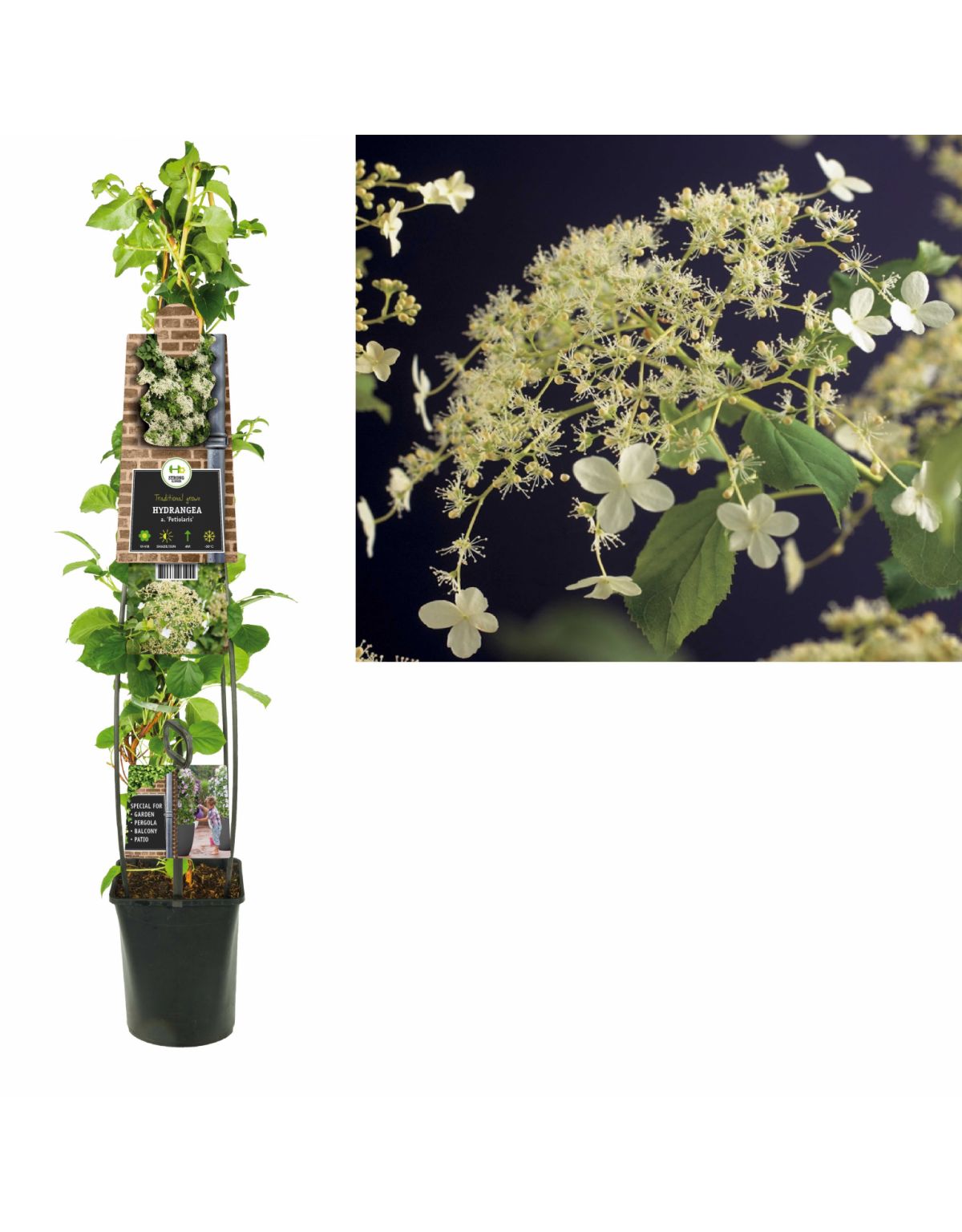 Deze klimplant Hydrangea a. Petiolaris Is incl. pot 120 cm hoog en volgroeid in ongeveer 7 jaar. Hij kan een hoogte bereiken van ongeveer 4 meter. Deze Hydrangea a. Petiolaris bloeit van Juni-Augustus met bloemen in de kleur wit en is winterhard. Deze klimplant kan gesnoeid worden. Uitgebreide informatie staat op het plantetiket.