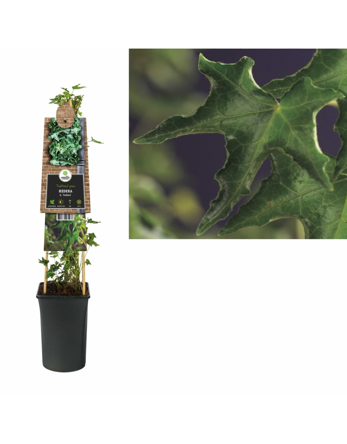 Deze klimplant Hedera h. Ivalace Is incl. pot 75 cm hoog en volgroeid in ongeveer 3 jaar. Hij kan een hoogte bereiken van ongeveer 4 meter. Deze Hedera h. Ivalace is het hele jaar bladhoudend en winterhard. Deze klimplant kan gesnoeid worden. Uitgebreide informatie staat op het plantetiket.
