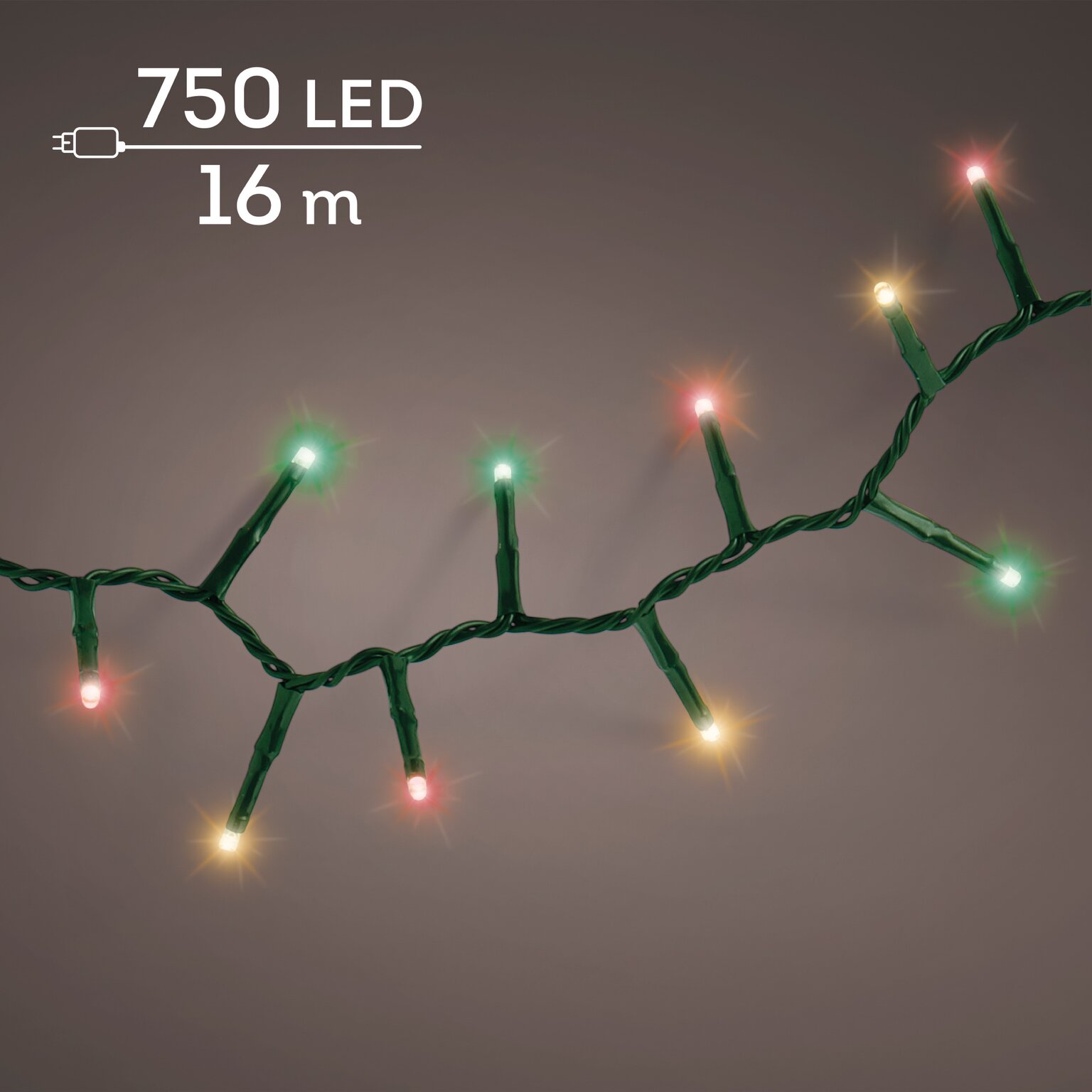 Deze compacte buiten lichtslinger brengt direct een feestelijke sfeer rond elke gevel, serre of tuin. Met 750 subtiele LED-lichtjes in Classic multicolour ontstaat een speels kleurenspel dat perfect past bij Kerst, maar ook bij andere feestelijke momenten. Door de korte afstand tussen de lampjes van slechts 2,2 cm oogt de verlichting extra vol en rijk, ideaal voor grote kerstbomen of lange hekwerken.