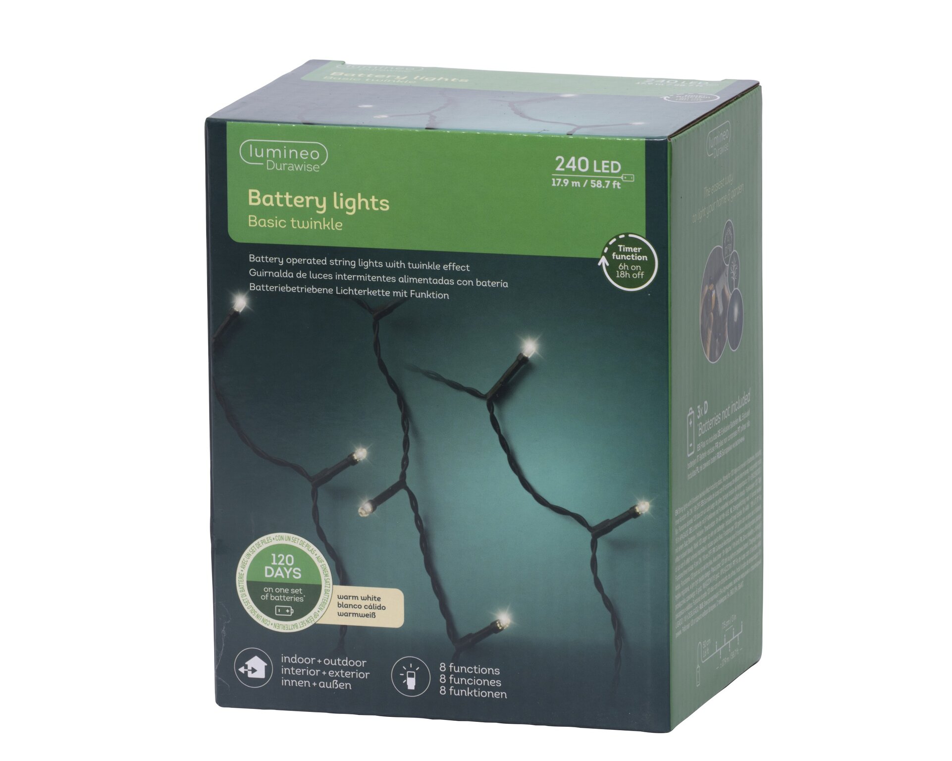 - 240 warm witte leds (5 mm), afstand tussen de lampjes: 7,5 cm