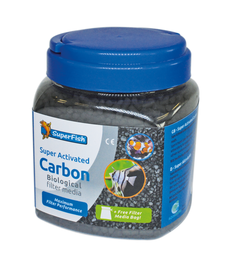 Super Activated Carbon is de beste kwaliteit filterkool en absorbeert in korte tijd kleur- en giftige stoffen uit het water terwijl de pH-waarde neutraal blijft.
