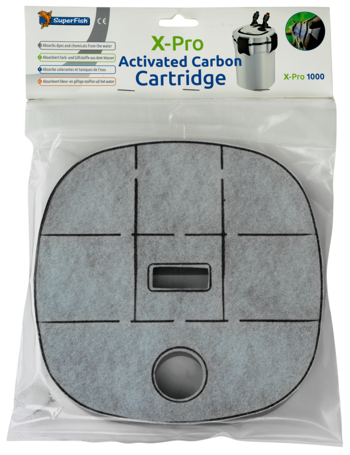 X Pro vervangingscartridges met actieve kool. Verkrijgbaar in vijf verschillende maten voor X Pro 400, 1000, 1500, 2000 en 2000 UV, elk filter heeft een ander formaat cartridge.