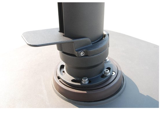 Onze grootste zweefparasol, de Hacienda parasol, zorgt voor flink wat schaduw die je eenvoudig op de juiste plaats krijgt. Deze forse parasol heeft een afmeting van 300x400 cm, toch is deze voor iedereen makkelijk te bedienen. Met een simpel handvat laat je de parasol naar het frame toe kantelen zodat de zon niet onder de parasol door schijnt. Met het voetpedaal kun je soepel de parasol 360 graden ronddraaien om helemaal rondom de parasolvoet schaduw te creëren. Draai in enkele seconden de parasol in of uit d.m.v een hendel zodat de parasol snel weer ingeklapt is tot een compact geheel. We adviseren om een beschermhoes te gebruiken wanneer de Hacienda parasol niet in gebruik is.