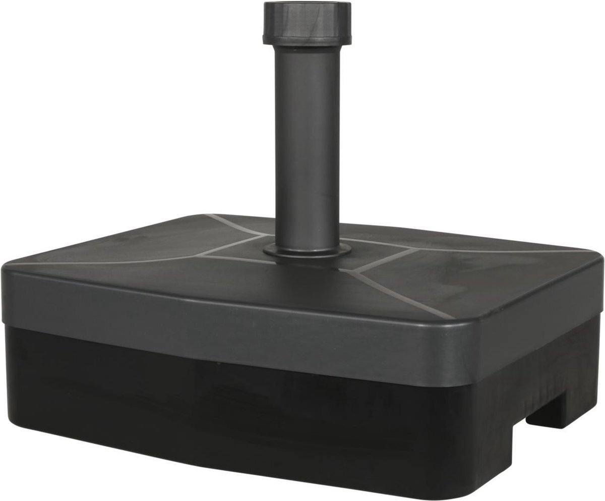 Het is niet meer nodig om met een parasolvoet van te gaan slepen. Vul de Lesli Living parasolvoet met water of zand en zet je parasol neer. Later als u hem niet meer gebruikt kunt u hem weer leeg laten lopen. Met een zware parasolvoet slepen is dus verleden tijd. Is eenvoudig te monteren. Geschikt voor parasols met een paaldiameter tussen de 18 en 54 mm. Afmeting 49 x 41 x 17,5 cm (B x D x H). Gewicht: 45 kg.