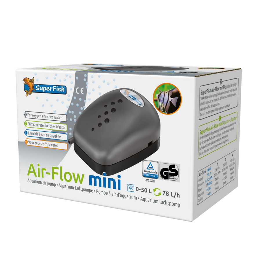 De Air-Flow luchtpompen zijn speciaal ontwikkeld voor het aquarium, voordelig in aanschaf en economisch in gebruik. Verkrijgbaar in 4 modellen met 1, 2 of 4 uitlaten en regelbare luchtstroom voor alle maten aquaria.
