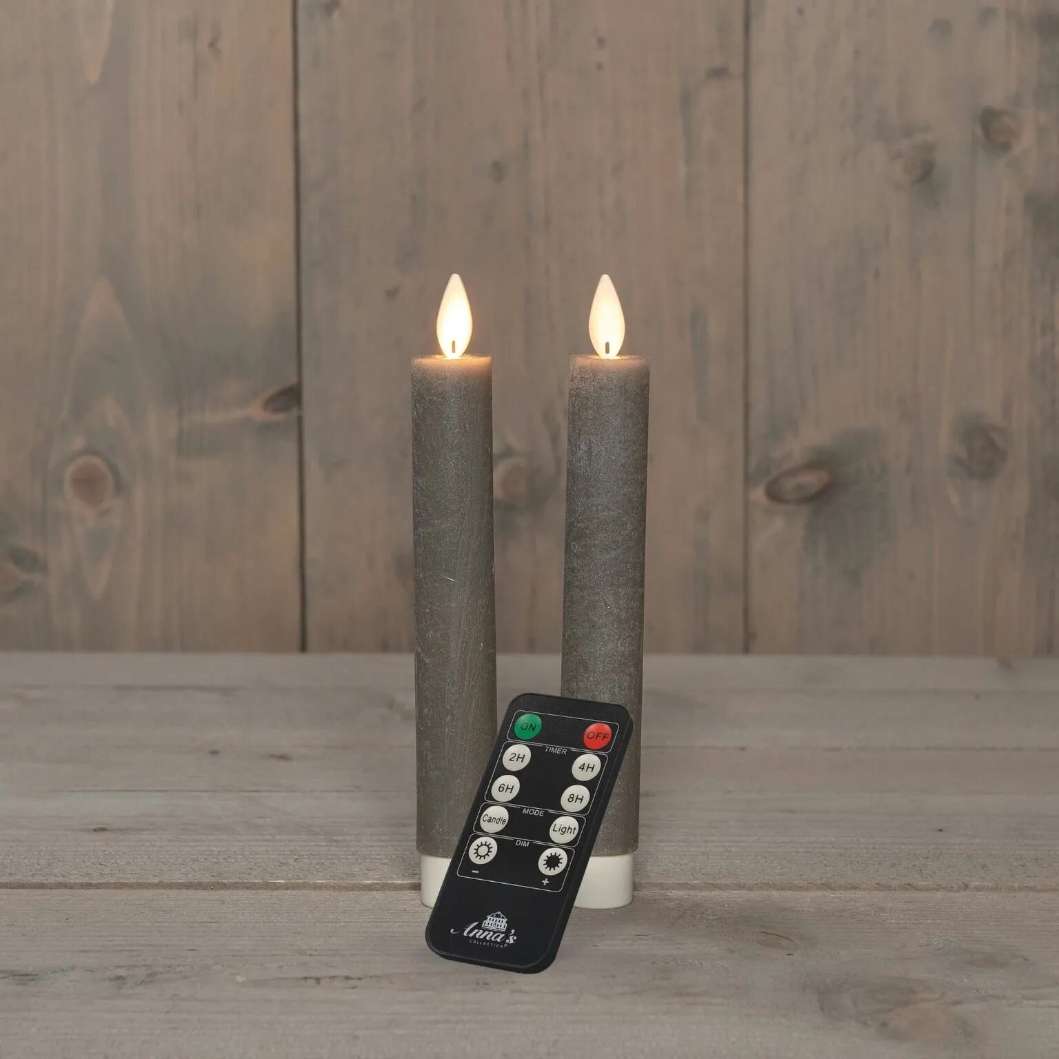 Deze set van twee taupekleurige dinerkaarsen voegt een warme en gezellige sfeer toe aan elke gelegenheid. De kaarsen zijn gemaakt van wax en hebben een LED-lampje dat een realistische bewegende vlam creëert. Met de handige afstandsbediening kun je de kaarsen eenvoudig aan- en uitzetten, zonder dat je telkens naar de kaarsen hoeft te lopen. Elke kaars heeft een hoogte van 18 cm en is perfect voor op tafel tijdens een diner of als decoratie in huis. Let op: de batterijen zijn niet inbegrepen, dus zorg ervoor dat je deze apart aanschaft. Deze bruine dinerkaarsen zijn een stijlvolle en veilige keuze voor iedereen die wil genieten van de sfeer van kaarslicht zonder het gedoe van echte vlammen.