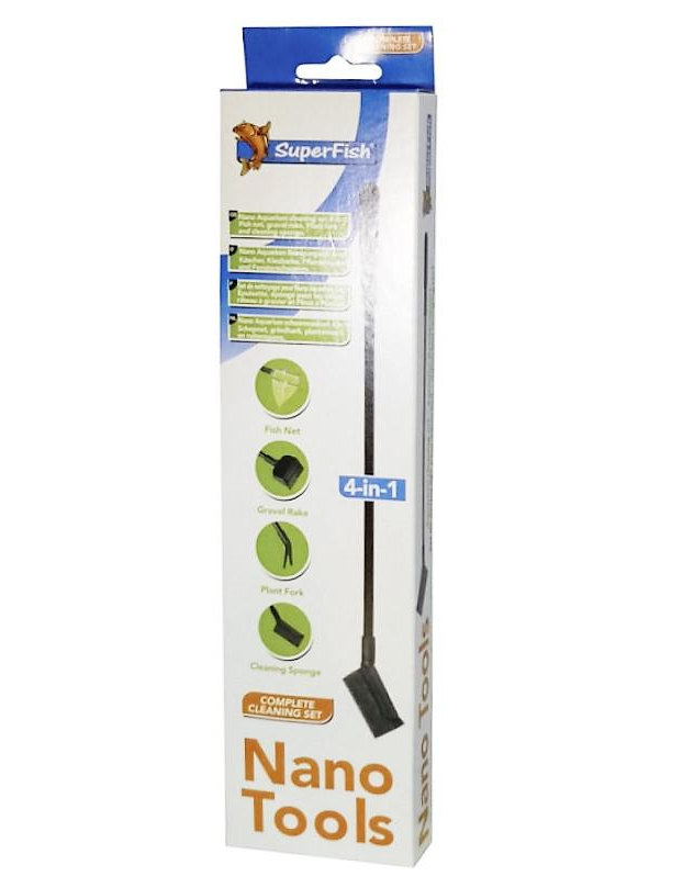 Met de 4 meegeleverde accessoires: een schepnetje, een ruitspons, een plantenvork en een grindhark wordt het onderhoud van uw aquarium heel eenvoudig.