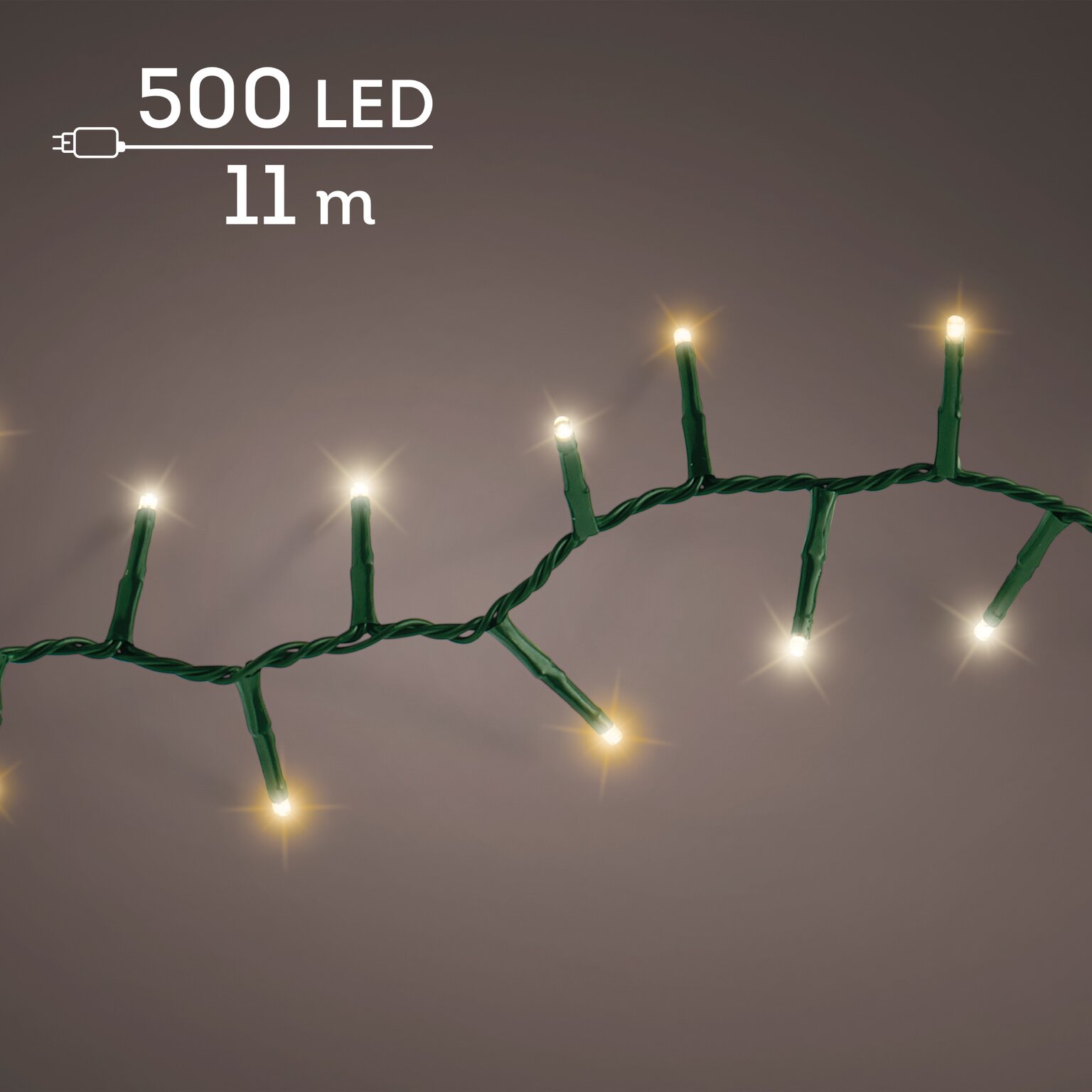 - 500 LED’s van 3 mm in klassiek warm wit, functie: constante verlichting