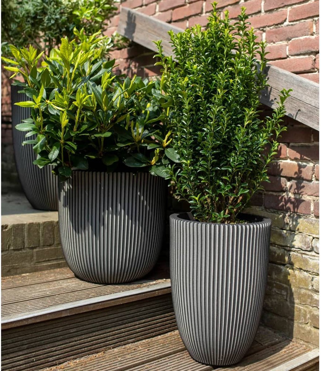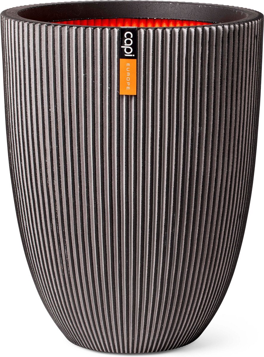 Deze stijlvolle bloempot uit de Capi Nature Groove NL-collectie combineert duurzaamheid en design. De pot is CO2-neutraal geproduceerd en vervaardigd van gerecyclede materialen. De kenmerkende oranje binnenkant verwijst niet alleen naar de Nederlandse productie, maar fungeert ook als isolatielaag. Dit maakt de pot bestand tegen vorst in de winter en hitte in de zomer. Dankzij deze extra laag is de pot bovendien extra stevig. Geschikt voor zowel binnen- als buitengebruik. De Groove-textuur, zoals de naam al suggereert, is geïnspireerd op natuurlijke groeven. Met name de verticale groeven in stenen en bergen, gevormd door de eeuwen heen, dienden als inspiratiebron. Deze collectie viert de indrukwekkende veranderingen die de natuur creëert. De bloempot is 100% waterdicht en daardoor perfect geschikt om binnen te gebruiken. Wil je de bloempot buiten gebruiken, zorg dan dat je een afwateringsgat van minimaal 25 mm in de bodem boort. Inhoud 27 liter.