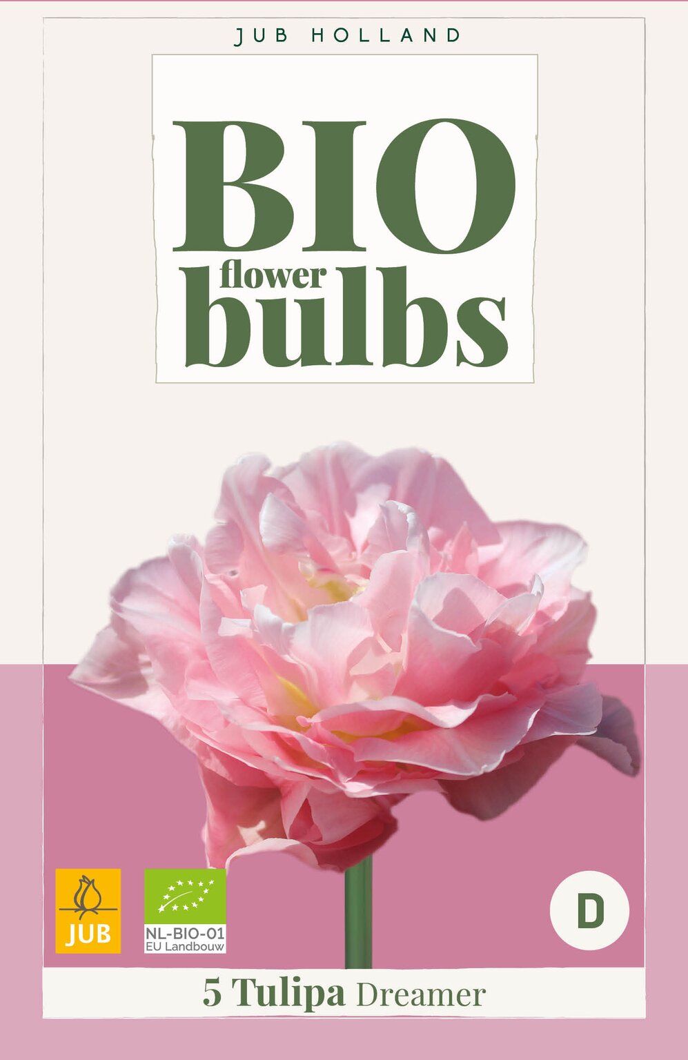 Dubbele vroege roze Tulp. Biologisch geteeld. Een bijzondere kleur. Prachtig te combineren met andere bijzondere Tulpen. Het is een goede tuintulp, zowel voor de border als in potten op terras of balkon. Brengt een vrolijke en levendige sfeer in uw tuin.