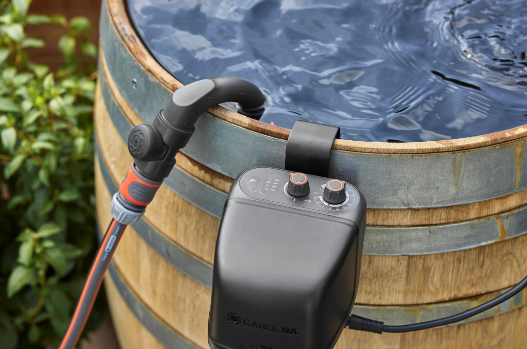 De regentonpomp op accu kan na het opstarten zonder toezicht blijven werken. Je hebt dan de beschikking over een timerfunctie van 5, 10 of 15 minuten en een automatische uitschakeling. Hierdoor verbruikt de pomp niet onnodig veel accu en water en hoef je niet te wachten of eraan te denken om de pomp weer uit te zetten.