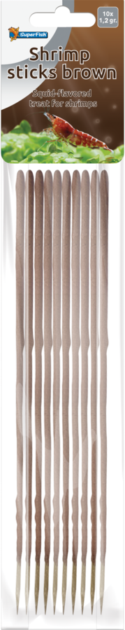 De Superfish Shrimp Stick is een heerlijke gezonde snack voor jouw garnalen. De Sticks zijn gemaakt van ingrediënten die de groei, kleur en kweek van garnalen bevorderen en rijk aan mineralen. Inhoud 10 sticks, aanvullend voer, gebruik 1 stick per 50 garnalen, 2 tot 3 keer per week.