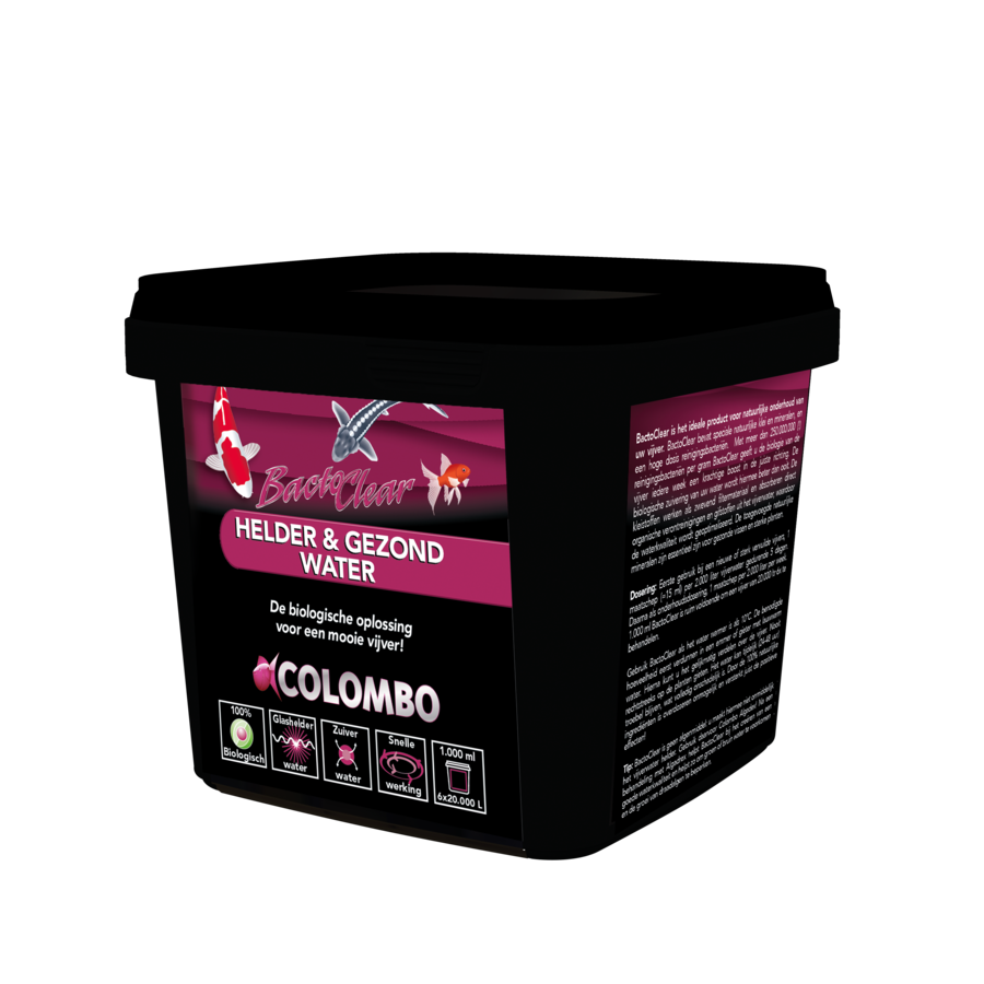 Bactoclear bevat speciale natuurlijke klei en mineralen, en een hoge dosis reiniging bacteriën. De kleistoffen werken als een zwevend filtermateriaal en absorberen direct organische verontreinigingen en giftige stoffen in de vijver. De toegevoegde natuurlijke mineralen zijn essentieel zijn voor vissen en planten. De reinigingsbacteriën maken de vijver schoon.