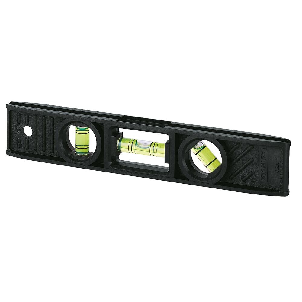 De STANLEY Torpedo 200mm - 3L waterpas heeft een slagvaste ABS spuitgegoten behuizing. Hij heeft 3 goed zichtbare libellen: een verticale, een horizontale en een onder een hoek van 45°.