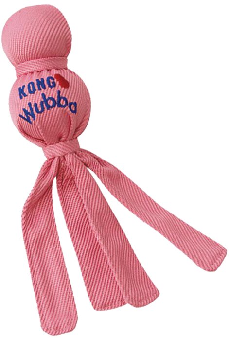 De KONG Puppy Wubba is een grappig interactief gooi- en trekspeeltje. Onverslijtbare, verstevigde nylon stof bedekt beide ballen — een tennisbal bovenop en een piepbal onderop. Door de lange staarten is het gemakkelijk op te pakken en te gooien. Puppy’s zijn er dol op om de Wubba te laten piepen en de slingerende staarten heen en weer te schudden.