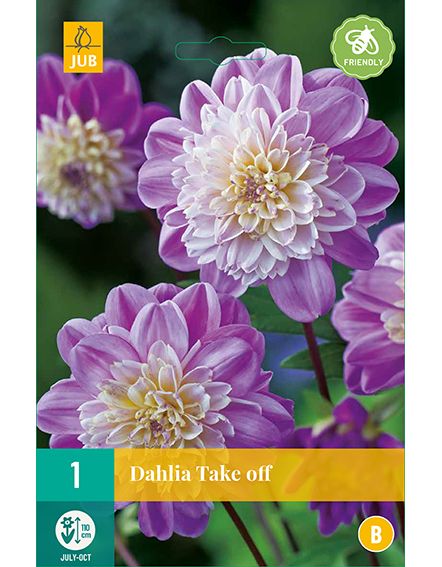 Dahlia 'Take Off' is goed te combineren met vaste planten en andere dahlia soorten. De roze met witte bloemen zijn echte blikvangers in de border. Dahlia 'Take Off' is ook een uitstekende snijbloem en lang houdbaar op de vaas. Het beste tijdstip om dahlia's te snijden is vroeg op de dag. Zet de stelen direct in lauwwarm water met snijbloemenvoedsel.