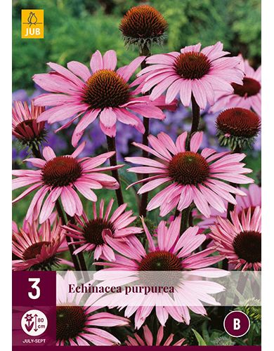 Echinacea purpurea wordt ook ‘Zonnehoed’ genoemd. De Echinacea purpurea krijgt in de zomer opvallende bloemen. Ze vallen op door hun grootte en kleuren: een combinatie van een oranjebruin hart omringd door contrasterende roze bloemblaadjes. Ook als de bloem is uitgebloeid en de roze blaadjes verkleurd omlaag hangen, heeft deze bloem nog sierwaarde. Een extra attractie is dat tijdens de bloei het een komen en gaan is van talloze hommels en vlinders. Hoogte 70-80 cm.