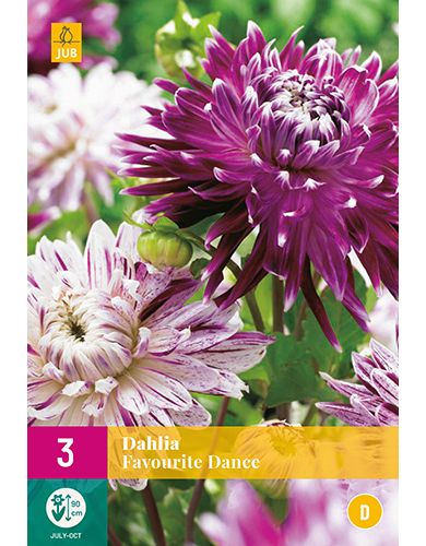 De grootbloemige, decoratieve dahlia mix 'Favourite Dance' is een dankbare zomerbloeier die u maandenlang plezier geeft. Dahlia's bloeien de hele zomer van juli tot de eerste nachtvorst. Deze dahlia's worden ongeveer 80-90 cm. hoog. Soms is het nodig om de bloemstengels te steunen.