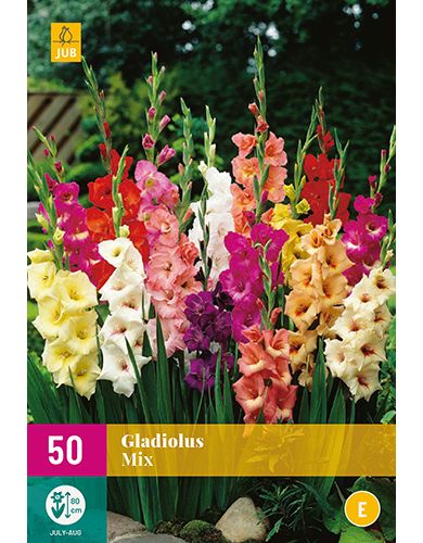 Dit mengsel van fraai gekleurde gladiolen is onmisbaar in uw zomertuin. Deze echte zomerbloeiers kunnen wel tot in de herfst in bloei staan. Deze rijkbloeiende, grootbloemige gladiolen worden 70-80 cm. en zijn ook prachtige snijbloemen. Plant dus zeker een rijtje gladiolen in uw snijbloementuin. Bovendien is dit gladiolenmengsel zeer rijkbloeiend en mag dus niet ontbreken in uw zomerbloementuin.