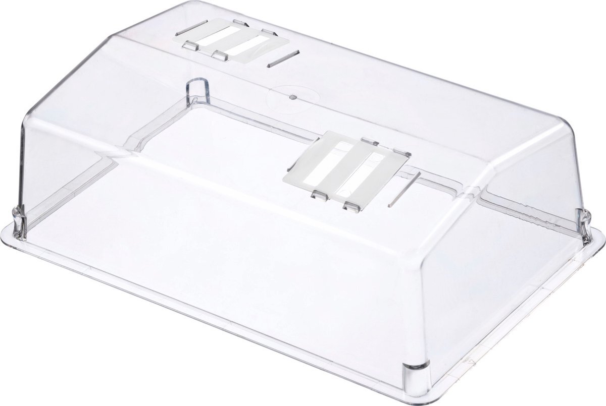 Deze grote transparante deksel van Nature heeft twee regelbare ventilatieopeningen en is geschikt voor rechthoekige kweekbakken. Dankzij de ventilatieopeningen is de vochtigheidsgraad in de kweekbak eenvoudig te regelen. De transparante deksel is gemaakt van duurzaam kunststof en heeft een afmeting van H 15 x 55 x 31 cm.