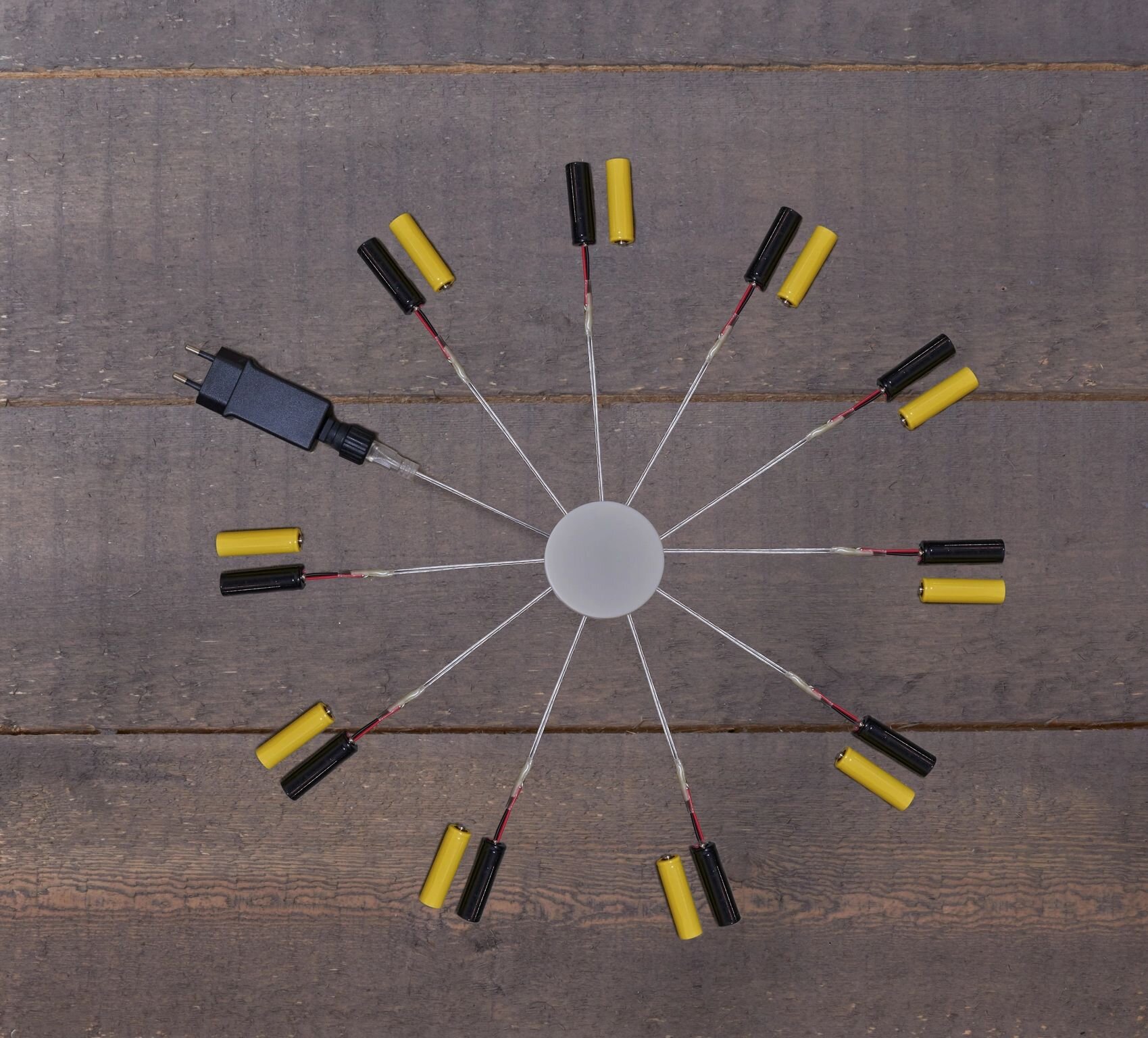 In deze 3V trafo kunnen 2 x AAA batterijen worden geplaatst, maximaal 10 x 2 AAA batterijen.