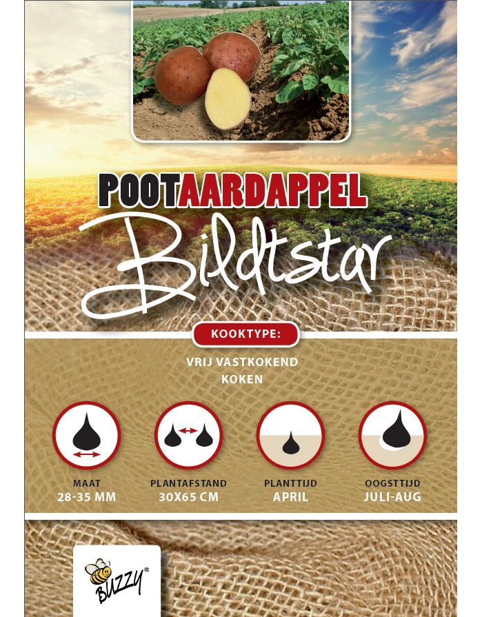 Bildstar is een late aardappel met een rode schil en een goede consumptie kwaliteit. Goed te bewaren tot en met het voorjaar. Is vatbaar voor aardappelziekte in het blad en in de knol. Maat: 28/35