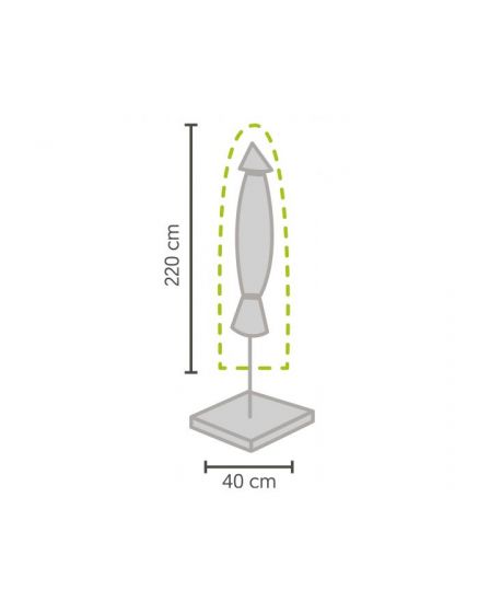 Waterdichte parasolhoes met rits. Door de bijgleverde glasfiber stok is de bevestiging heel eenvoudig en is een trapje overbodig. De Winza hoezen zijn waterdicht, kleurvast en zeer sterk. De hoes is geschikt voor parasols tot 400 cm.