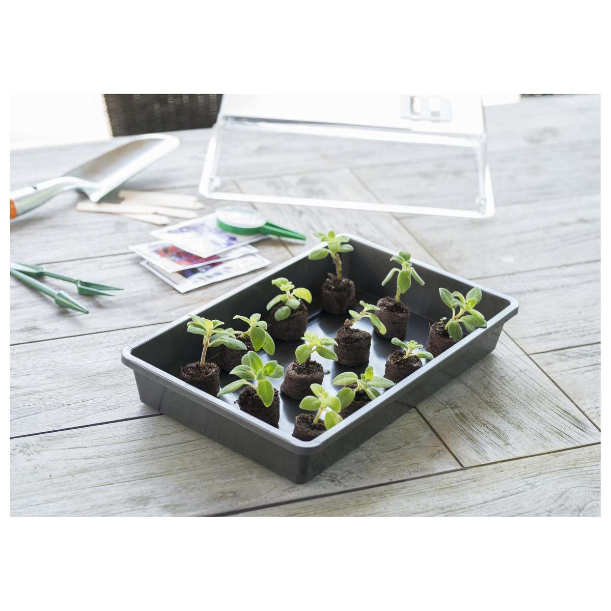 Deze antracietkleurige, rechthoekige kweekbak van Nature is gemaakt van duurzaam kunststof (spuitgiet) en is geschikt voor een groot aantal zaailingen of voor een groep identieke plantjes. Dankzij het sterke materiaal kan de kweekbak jaar op jaar gebruikt worden. De moderne kweekbak heeft een afmeting van H 7,5 x 55 x 31 cm. Een bijpassend deksel met regelbare ventilatieopeningen is apart verkrijgbaar.