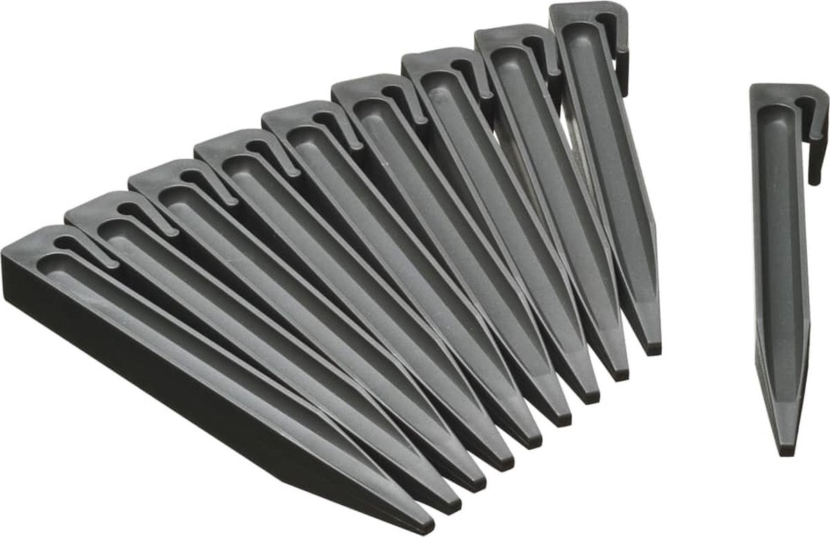 Borderranden vastzetten gaat eenvoudig met deze sterke grondpennen van Nature. Ze zijn gemaakt van gerecycled polypropyleen (PP) en uv-behandeld. De grondpennen zijn 19,5 cm hoog en gemakkelijk vast te zetten in de inkepingen van de borderrand. Ze zijn per 10 stuks verpakt en verkrijgbaar in verschillende afmetingen en kleuren. Deze grondpennen hebben een afmeting van H 19,5x1,9x1,8cm, kleur grijs. Voor borderrand art.nr. 6040627.