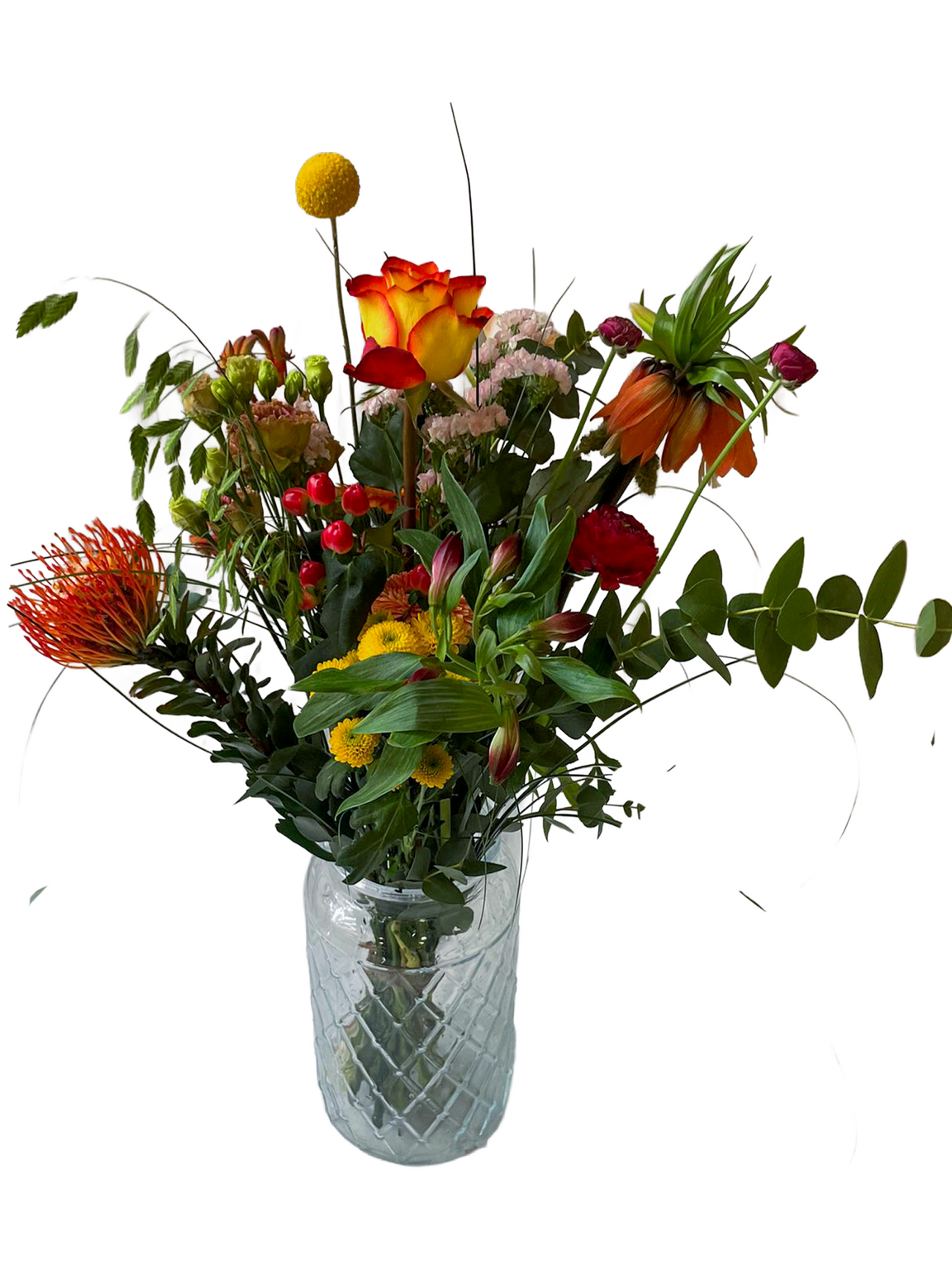 Bij AVRI Bloem- en Tuincentrum hebben wij een divers assortiment aan boeketten, leuk om cadeau te geven. Het betreft seizoensproducten, dus de gebruikte bloemen kunnen afwijken van de boven gebruikte afbeelding. Dit boeket is exclusief vaas