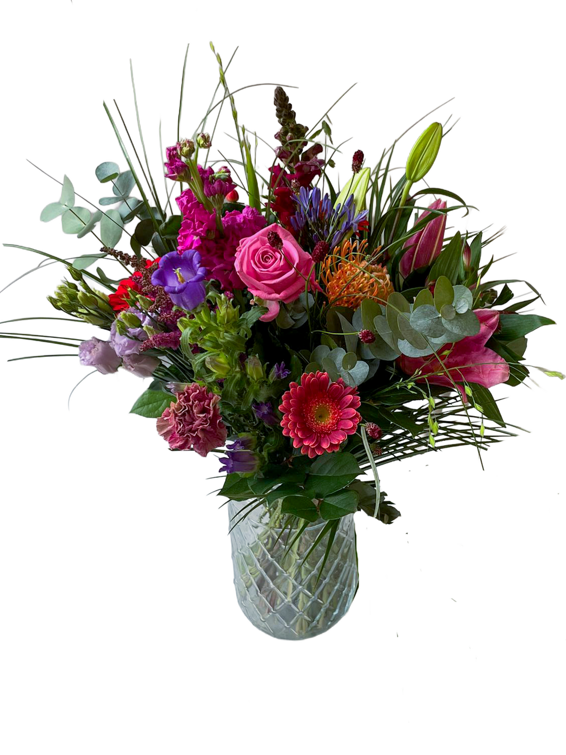 Bij AVRI Bloem- en Tuincentrum hebben wij een divers assortiment aan boeketten, leuk om cadeau te geven. Het betreft seizoensproducten, dus de gebruikte bloemen kunnen afwijken van de boven gebruikte afbeelding. Dit boeket is exclusief vaas