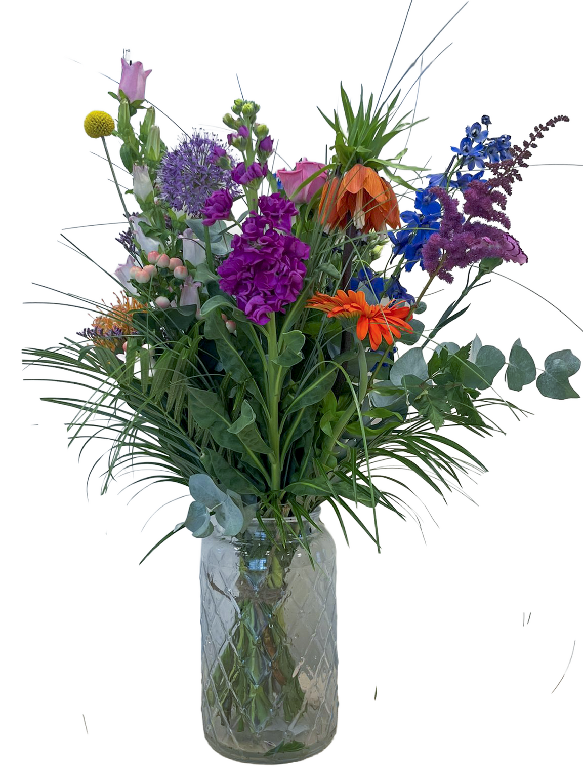 Bij AVRI Bloem- en Tuincentrum hebben wij een divers assortiment aan boeketten, leuk om cadeau te geven. Het betreft seizoensproducten, dus de gebruikte bloemen kunnen afwijken van de boven gebruikte afbeelding. Dit boeket is exclusief vaas