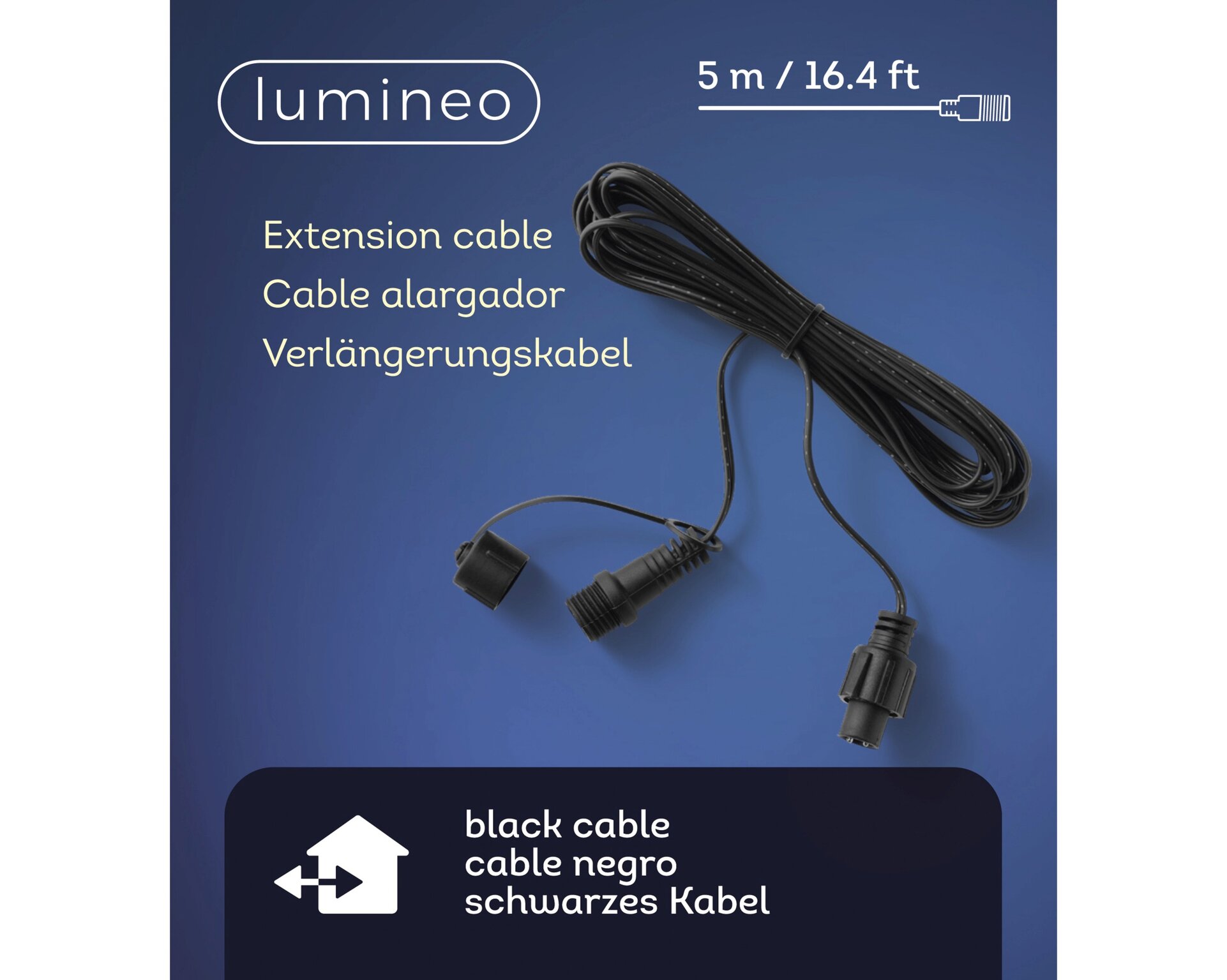 Met deze Lumineo verlengkabel breng je buitenverlichting precies daar waar het feest is. Ideaal om boomverlichting, Icicle lights of verlichte huisjes verder van het stopcontact te plaatsen. De zwarte kabel valt subtiel weg tussen struiken, langs schuttingen en gevels, zodat alle aandacht naar de verlichting gaat. Dankzij het robuuste ontwerp is de kabel uitstekend geschikt voor gebruik in de tuin of op het balkon, zowel tijdens de feestdagen als op andere sfeervolle avonden. De praktische connectoren sluiten naadloos aan op Lumineo buitenverlichting, waardoor alles veilig en betrouwbaar verbonden blijft, ook bij nat weer.